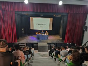 Los grupos han sido recibidos en el Salón de Actos por la Directiva, Jefatura de Estudios y Jefatura de Departamento.