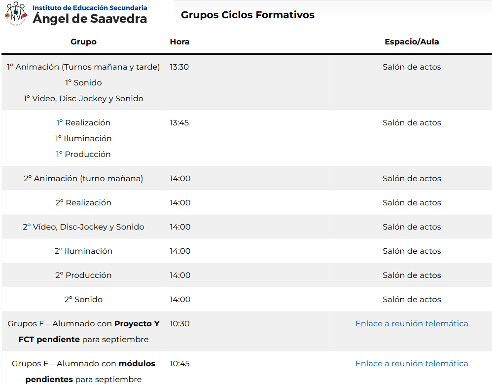También tendrá lugar una serie de reuniones con el alumnado pendiente de superar módulos suspensos o que van a cursar FCT y Proyecto para poder titular por la normativa antigua.
